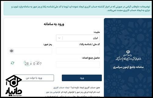 ابتدا متقاضیان باید سایت مای سنجش به نشانی my.sanjesh.org را در مرورگر خود جستجو کرده و وارد آن شوند. برای ورود به پرتال باید ابتدا در سامانه ثبت نام کرده و سپس با درج کد ملی یا شناسه یکتا و رمز عبور، وارد حساب کاربری خود شوند.
