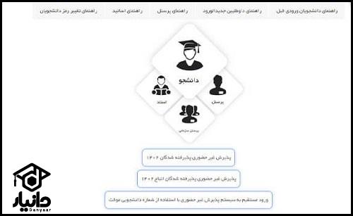 در ادامه باید نام کاربری و رمز عبور خود را وارد و کد امنیتی نمایش داده شده را درج کرده و بر روی گزینه ورود به سیستم کلیک کنند. نام کاربری همان شماره دانشجویی و رمز عبور همان گذر واژه انتخابی دانشجویان در سیستم می باشد.
