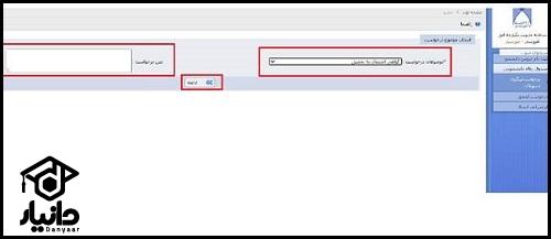 در مرحله آخر باید گواهی اشتغال به تحصیل را از میان گزینه های موجود عنوان درخواست انتخاب کرده و متن درخواست خود را درج و ثبت نمایند.