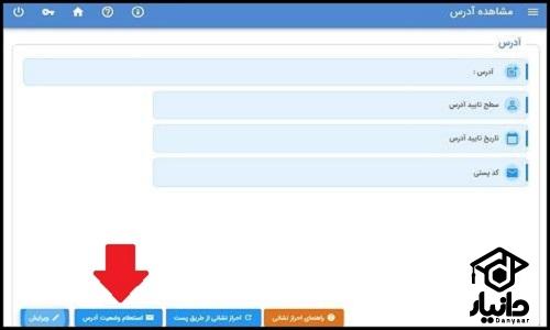سپس بر روی گزینه استعلام وضعیت آدرس کلیک کنند.