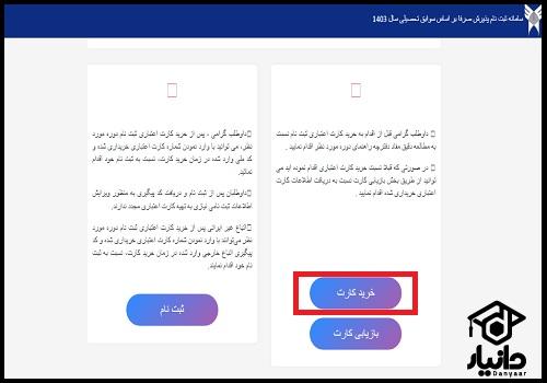 بعد از وارد شدن به صفحه اصلی سایت، داوطلبان می بایست با انتخاب گزینه خرید کارت اعتباری به مرحله پرداخت آنلاین هزنیه ثبت نام بدون کنکور دانشگاه آزاد 1404 وارد شوند.