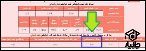 2- کدام رتبه به عنوان رتبه نهایی برای انتخاب رشته در کارنامه کنکور سراسری می باشد؟ ✔️رتبه نهایی برای انتخاب رشته کنکور، رتبه کل داوطلب در سهمیه نهایی می باشد که توضیحات کامل در مقاله ذکر شده است.