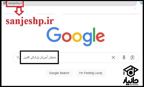 ابتدا لازم است، داوطلب در مرورگر خود عبارت "سنجش آموزش پزشکی کشور" و یا در نوار جستجوی مرورگر، آدرس اینترنتی sanjeshp.ir را جستجو نماید.