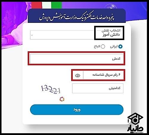 انتخاب نقش و وارد کردن کد ملی و سریال شناسنامه