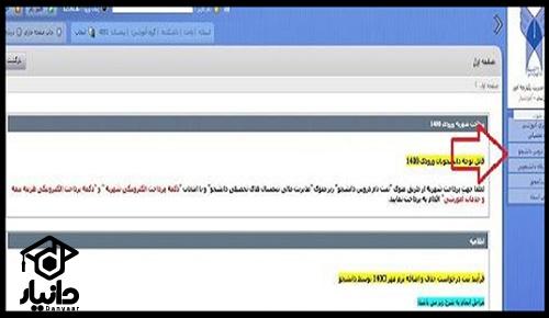 دانشجویان عزیز بعد از وارد شدن به صفحه اصلی (پورتال)، از منوی سمت راست تصویر به نمایش گذاشته شده گزینه ثبت نام دانشجو را انتخاب کرده و بر روی آن کلیک کنند.