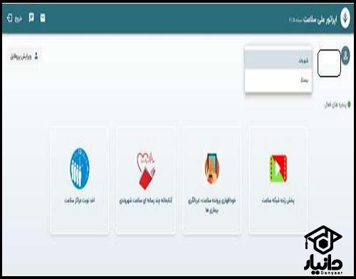 پس از ورود به سامانه و صفحه اصلی اپراتور ملی سلامت، بخش های مختلف سایت نمایش داده می شود.