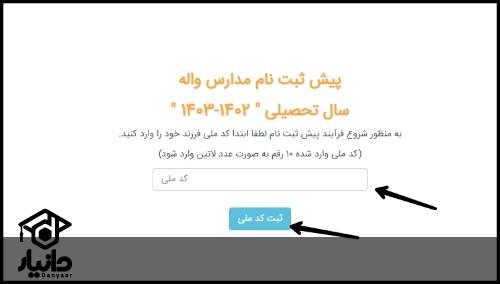 حالا نوبت ثبت و احراز کد ملی دانش آموز می باشد که این کد شامل 10 رقم خواهد بود.