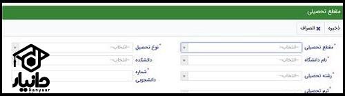 همچنین اطلاعات مربوط به مقطع و رشته تحصیلی، مشخصات دانشگاه و شماره دانشجویی خود را وارد نموده تا ثبت نام خود را در سایت تکمیل نمایند.