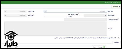 سپس باید اطلاعات مربوط به نوع و مبلغ وام مورد نظر را وارد نموده و درخواست وام دانشجویی خود را ثبت نمایند.