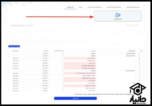 پس از طی کردن همه مراحل، با کلیک بر روی گزینه "خلاصه وضعیت" می توان خلاصه تمامی شایستگی ها را مشاهده کرد و در صورت نبود مشکل، در پایان گزینه "تائید نهایی" را انتخاب کرد.