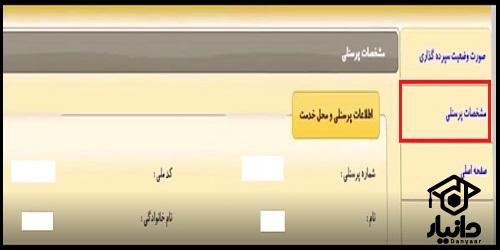 در صفحه باز شده، کاربر باید به بخش "مشخصات پرسنلی" برود.