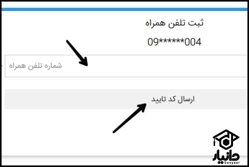 در ادامه می بایست شماره تلفن همراه در فرم وارد شود.