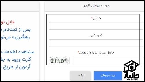 جهت اخذ نتایج امتحان نیاز به شماره ملی و کد رهگیری بوده که در صورت فراموشی کد رهگیری شرایط بازیابی فراهم شده است.
