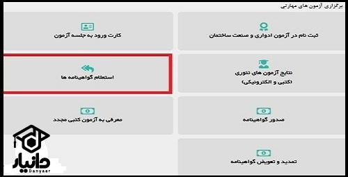 لازم است متقاضیان بعد از ورود به سایت سازمان فنی حرفه ای، ابتدا اقدام به استعلام گواهینامه فنی و حرفه ای نمایند.