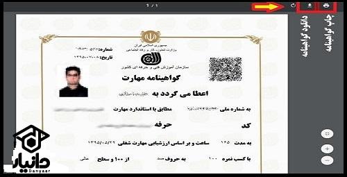 در ادامه افراد می توانند گزینه "چاپ" و همچنین "دانلود گواهینامه" را مطابق تصویر زیر انتخاب نمایند.