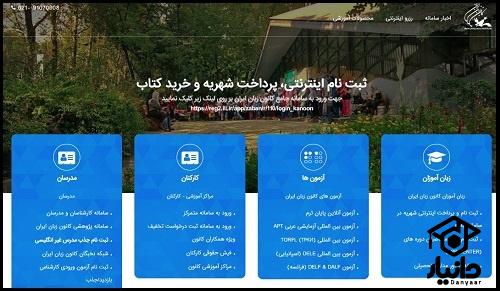 در این سایت کاربر می تواند به اخبار سامانه، رزرو اینترنتی و محصولات آموزشی دسترسی داشته باشد که این قابلیت ها در منوی سایت قرار داده شده است. کارکنان و مدرسان کانون زبان ایران می توانند در این سامانه عملیاتی چون ثبت نام دوره آموزش ضمن خدمت مدرسین و نیز دسترسی به فیش حقوقی کارکنان را انجام دهند. مهم ترین عملیات این سامانه دریافت نتایج آزمون های کانون زبان ایران می باشد که نحوه دریافت آن در بخش بعد ارائه خواهد شد.