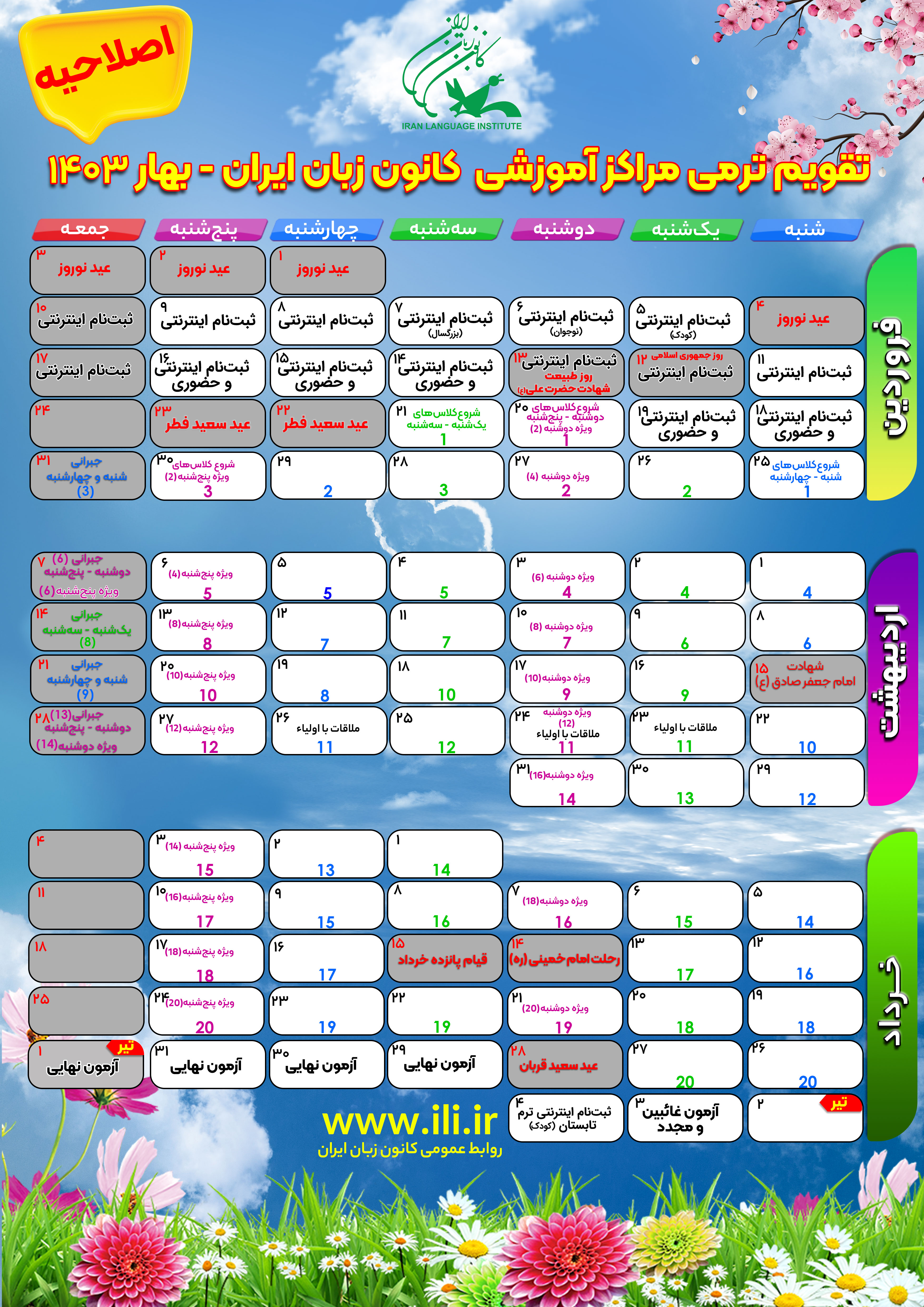 1- تاریخ برگزاری آزمون پایان ترم کانون زبان ایران چه زمانی است؟ ✔️زمان امتحان فاینال آخر هر فصل بوده که جدول برگزاری در سایت کانون زبان درج می شود. راهنمای کامل در مقاله آمده است.