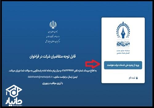 در صفحه نخست باید بر روی گزینه "ورود از پنجره ملی خدمات دولت هوشمند" کلیک کرد.