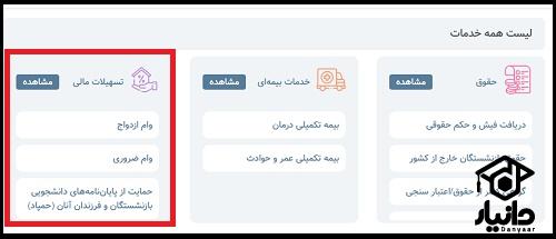 کاربر در ادامه مسیر پس از درج نشانی در مرورگر گوگل به صفحه اصلی سایت صندوق بازنشستگی کشوری داشته و بایستی از میان خدمات در بخش تسهیلات مالی بر روی وام مورد نظر ضربه بزند.
